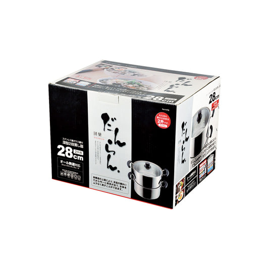 だんらん ステンレス製ガラス蓋付深型2段蒸し器28㎝(2升用) H-4795