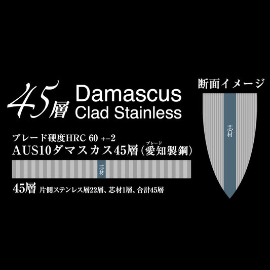 毘嵐 ダマスカス45層AUS10ペティーナイフ120 F-2343