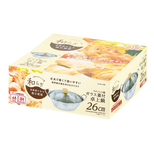和らぎ ステンレス製ガラス蓋付卓上鍋26㎝ HB-4788