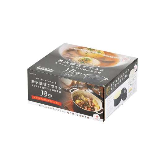 無水調理ができるセラミック加工IH対応両手鍋18㎝(ブラック) HB-5724