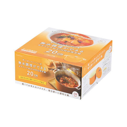 無水調理ができるセラミック加工IH対応両手鍋20㎝(イエロー) HB-5725