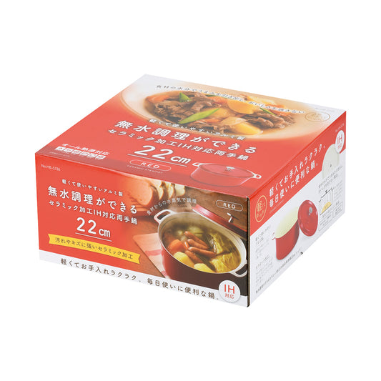 無水調理ができるセラミック加工IH対応両手鍋22㎝(レッド) HB-5726