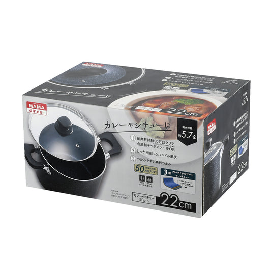 ママディナーα マーブルダイヤモンドIH対応ガラス蓋付カレー・シチューポット22㎝ HB-5896