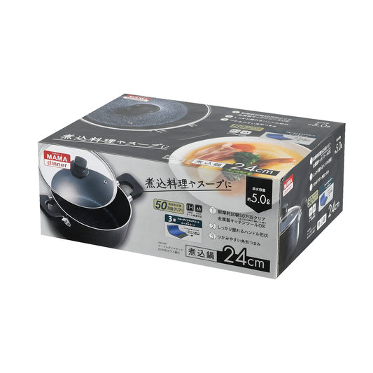 ママディナーα マーブルダイヤモンドIH対応ガラス蓋付煮込鍋24㎝ HB-5897