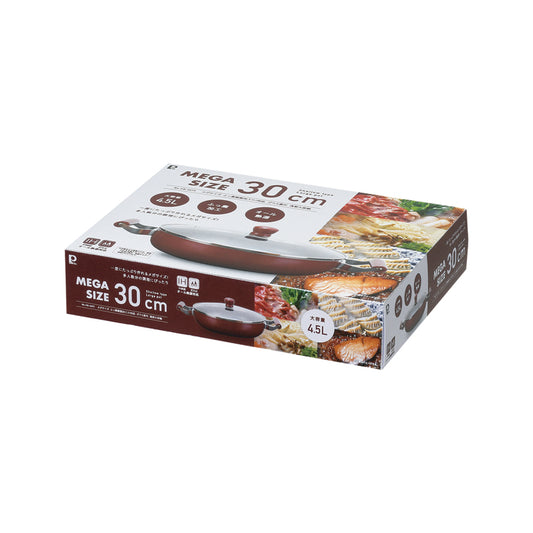 メガサイズ ふっ素加工IH対応ガラス蓋付浅型大型鍋30㎝ HB-6673