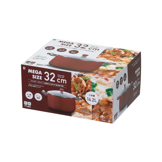 メガサイズ ふっ素加工IH対応ガラス蓋付深型大型鍋32㎝ HB-6674
