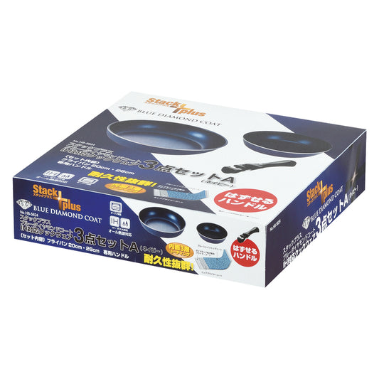スタックプラス ブルーダイヤモンドコートIH対応クックウェア3点セットA(ネイビー) HB-5624