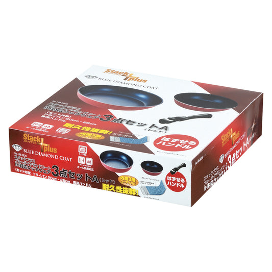 スタックプラス ブルーダイヤモンドコートIH対応クックウェア3点セットA(レッド) HB-5625