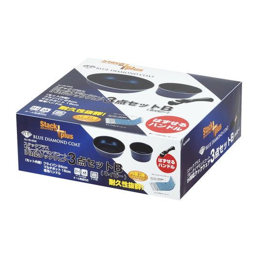 スタックプラス ブルーダイヤモンドコートIH対応クックウェア3点セットB(ネイビー) HB-5626