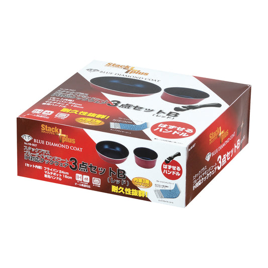 スタックプラス ブルーダイヤモンドコートIH対応クックウェア3点セットB(レッド) HB-5627