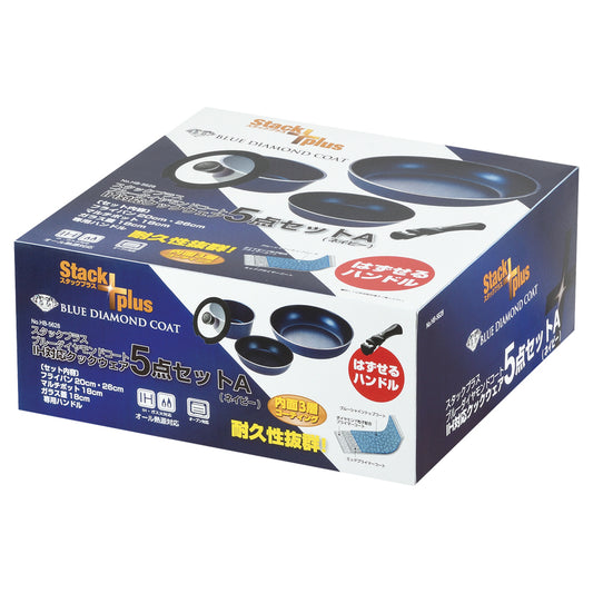 スタックプラス ブルーダイヤモンドコートIH対応クックウェア5点セットA(ネイビー) HB-5628