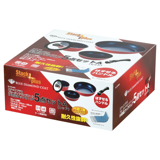 スタックプラス ブルーダイヤモンドコートIH対応クックウェア5点セットA(レッド) HB-5629
