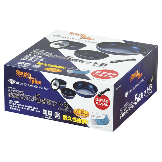 スタックプラス ブルーダイヤモンドコートIH対応クックウェア5点セットB(ネイビー) HB-5630