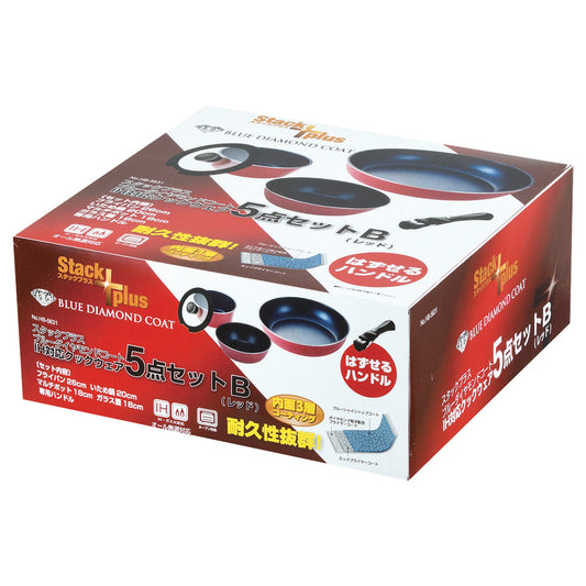 スタックプラス ブルーダイヤモンドコートIH対応クックウェア5点セットB(レッド) HB-5631