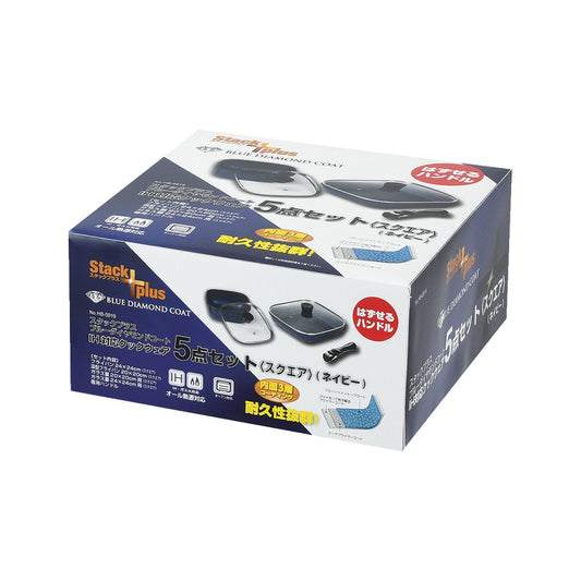 スタックプラス ブルーダイヤモンドコートIH対応クックウェア5点セット〈スクエア〉(ネイビー) HB-5919