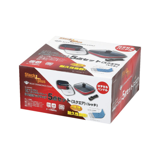 スタックプラス ブルーダイヤモンドコートIH対応クックウェア5点セット〈スクエア〉(レッド) HB-5920