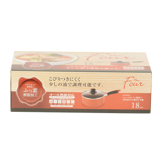 ニューフォア ふっ素加工IH対応ガラス蓋付片手鍋18㎝ HB-8051