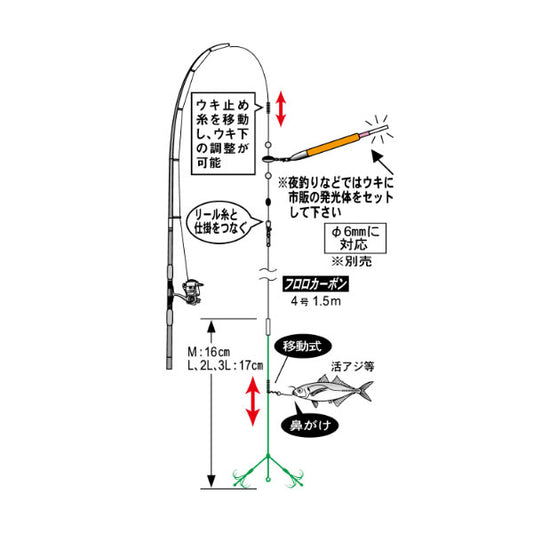 KT-015 海上釣堀 青物泳がせ仕掛 タナ取りオモリ仕様