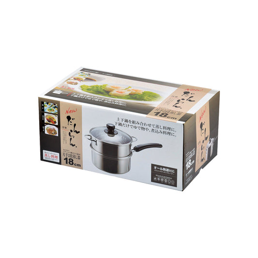 NEWだんらん ステンレス製ガラス蓋付片手2段蒸し器18㎝ H-5874
