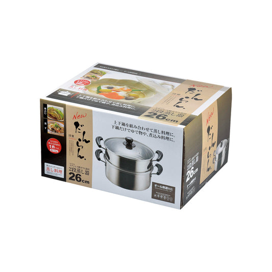 NEWだんらん ステンレス製ガラス蓋付2段蒸し器26㎝ H-5875
