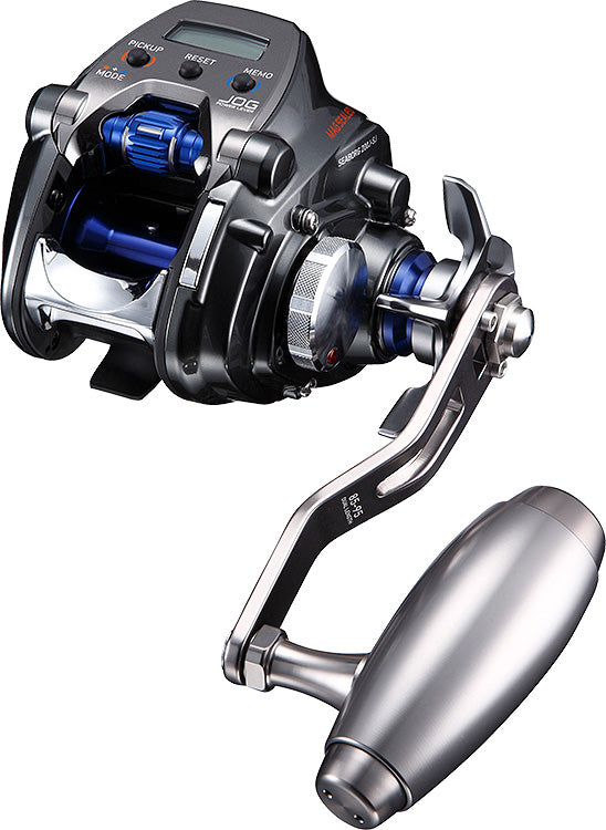 SEABORG 200Jをベースに電動スロージギングに求められる機能を搭載し、中深海のアカムツ、クロムツ、高級根魚などを快適に攻略する専用設計モデル。手巻き操作においては、ジグをしっかり巻き取る85-95mm可変ハンドルアームにアルミ樽型ノブ。ギア比アップによるハンドル1回転60cmと併せ、快適なリトリーブを実現。またフォールにおけるバイトを誘発するフォールブレーキダイヤルは親指ひとつでの操作が可能。電動操作においては、ワンハンド快適操作のアルミ製JOGパワーレバーを搭載。濡れた指先やグローブ着用時でも親指ひとつで棚取り・誘い・アワセ・回収と快適な巻上げ操作を実現。ドラグにおいては口切れを防止すべくMAX 6kgの滑らかに効き続けるATDを採用。充実の専用設計は、中深海のスロージギングをより快適な世界へ。