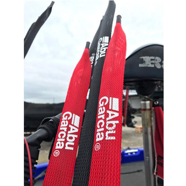 ボート上で糸がらみを防ぐメッシュ素材を使用したロッドカバー ボートや車内でのロッド同士の干渉を防ぎブランクスやガイドを傷から守るメッシュ素材のロッドカバー。ボートや車内でのロッド同士の干渉を防ぎブランクスやガイドを傷から守るメッシュ素材のロッドカバー ロッドにリールをセットした状態でラインを通しリグを装着したままで使用が可能。本体の根元に縫い込まれたゴムスピンドルとストッパーをリールのハンドル等に引っかけて保持することが可能。複数本のロッドにリグをセットした状態で移動する事が多いバスボート上や車内での使用時に糸がらみを等を防ぎます。