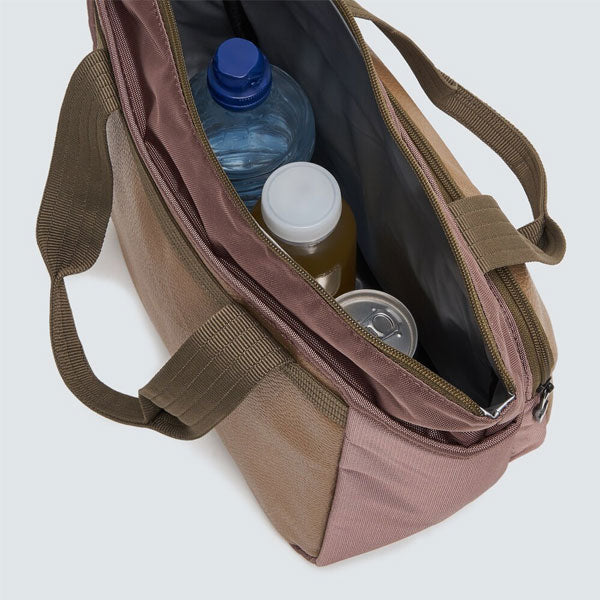 メイン収納には保冷、保温効果のある裏地を採用し、中の物を適温に保てる仕様。フロントポケットはマチがあるので、小物を沢山収納出来るデザイン。メタルのロゴ使いで高級感を演出。