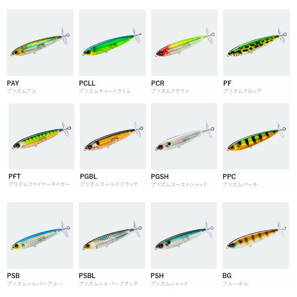 ◎ドッグウォークやただ巻きで、起きるプロップの回転でアピール。◎プロップが抵抗となる為、ドッグウォークではペンシルと比べ移動距離を抑えられじっくりと狙うことが可能。◎超デッドスローで引いても回転する、軽量ポリカーボネート製UVプロップ搭載。◎強度抜群。ぶつけたり落としたりしても壊れません。◎回転音や水流による波動に加え、紫外線で発色するUVの効果も見逃せないポイント。