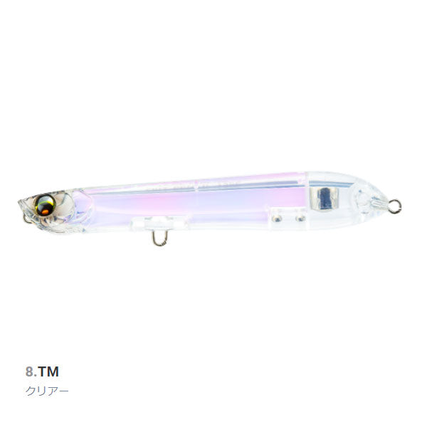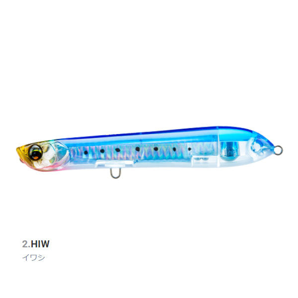 狙ったポイントをじっくり攻めるペンシルポッパー! 空力に優れたボディ形状と後部重心による圧倒的な遠投性能で広範囲をサーチ。フロントカップによるスピットとバブルで逃げ惑うベイトフィッシュを演出!絶妙な水絡みの連続クイックターンは狙ったポイントやナブラなどからルアーを離したくない時に有効。
