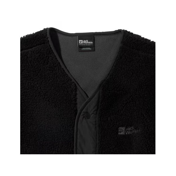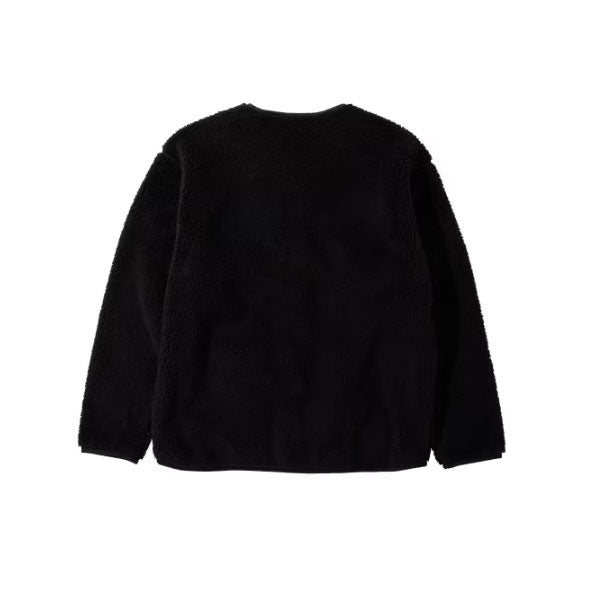 モコモコの風合いが心地良いボアフリースと、手触り柔らかなマイクロフリースを表裏で使い分け。両面ともに100%リサイクル素材で仕立てた、サステナブルなリバーシブルフリースジャケットです。広く開いた襟なしのネックラインで、レイヤードスタイルにも使いやすい1枚です。