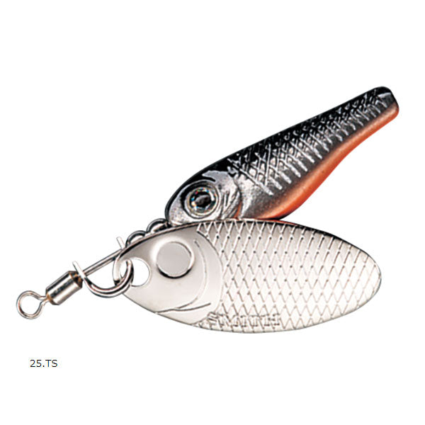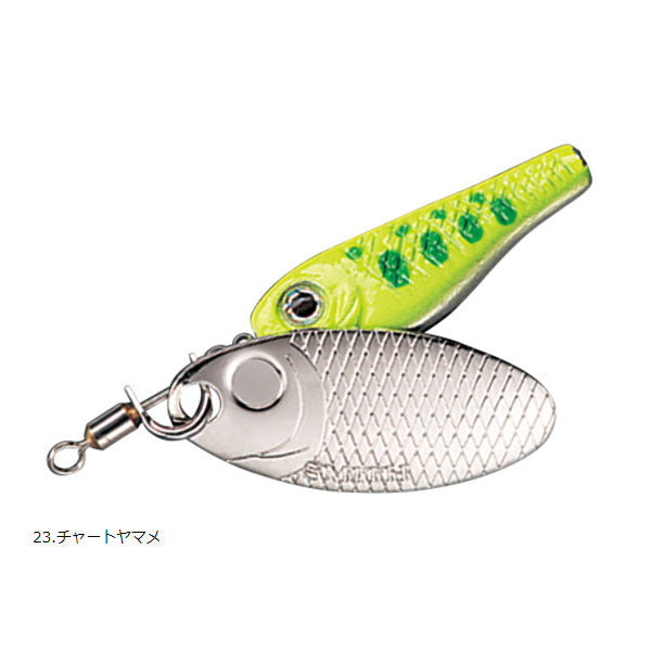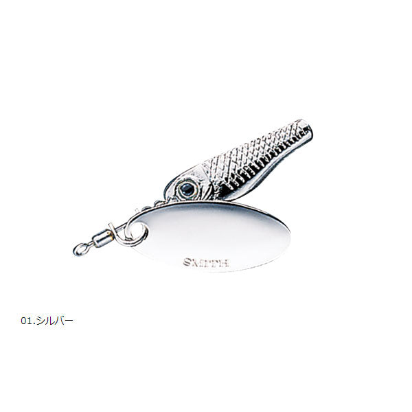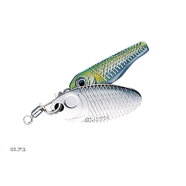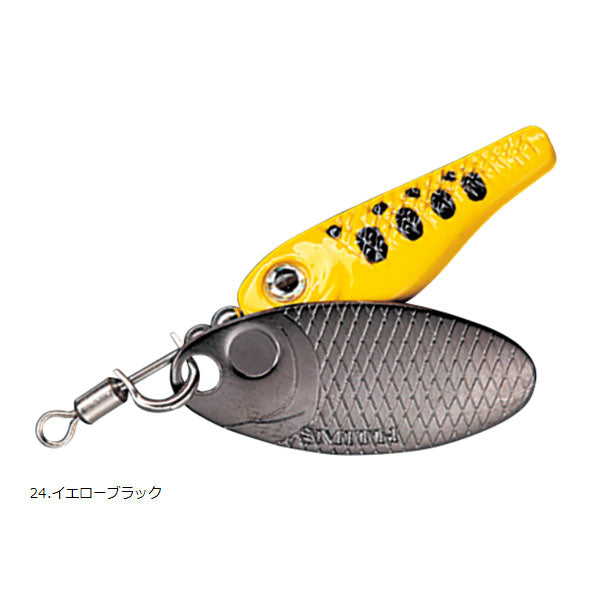 フィッシュボディースピナー 近年、金属系トラウトルアーの主流になりつつある小型サイズスプ-ンではなく、あえて「スピナー」を提案させていただいた理由は、「スピナーは良く釣れて好きなんだけど、糸ヨレがね・・・」「簡単なボディーの作りが物足りない・・・」などのアングラーの声をよく耳にし、「いいなぁ~と思う物があまり出てこないよねぇ」と言うアングラーに答えるためです。スピナーの弱点と市販されている物にないフォルム。そして使い勝手の良さを考え、スミスオリジナルとしてカタチにしたもの。それがフィッシュボディースピナー「ニアキス」です。