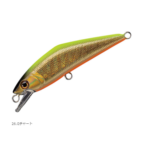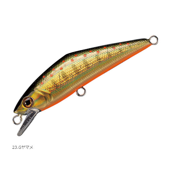 慣性スライドで喰わせるヘビーシンキングミノー 渓流のルアーフィッシングを一変させたヘビーシンキングミノー。 D-CONTACTは「慣性スライド」アクションを実現したミノーで、まさにヘビーシンキングミノーの火付け役とも言える存在です。その”D”とは、比重18のタングステンウェイトを内蔵し、50mmは4.5g、63mmは7g、72mmは9.5gものウェイトを確保しつつも極薄のボディーフォルムが繰り出す、驚異の「ディスタンス力」・「ディープ力」・「ディレクション力」を意味します。ヘビーシンキングミノー人気の火付け役でありつつも、その高い完成度は他の追随を寄せ付けず、今もなおその高い支持が衰えることはありません。