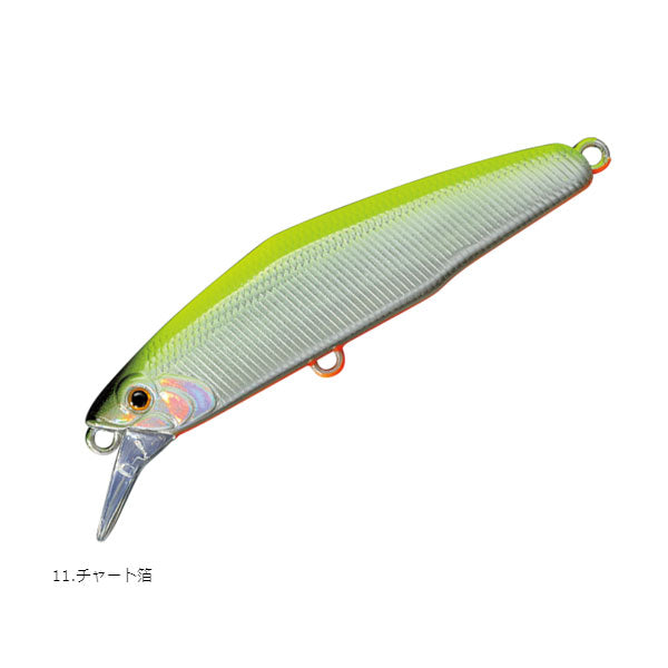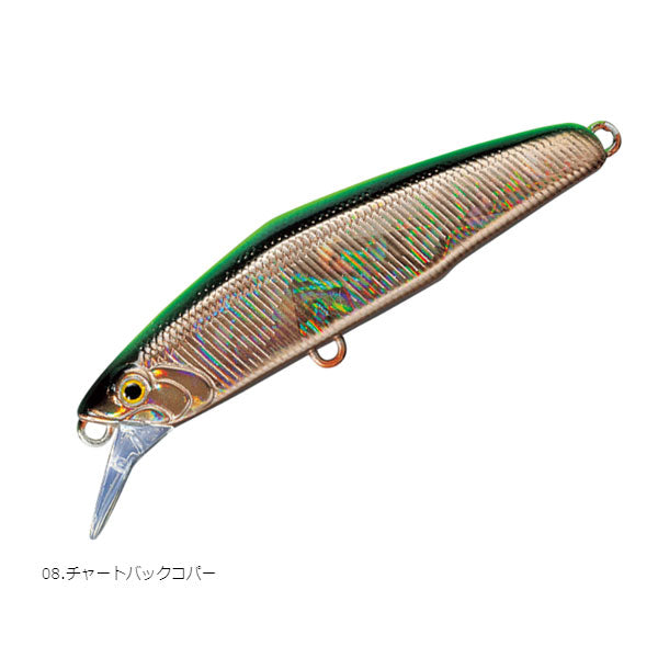 じっくり誘う技巧派の為の重心移動ヘビーシンキングミノー D-コークスは重心移動。その狙いは2つ。キャストでテールに重心を集中させ、 すばやいフォールスピードを獲得。狙ったレンジで1アクション→タングステンウエイトをセンターに移動させ、微入力による 流れまとわりつくような水平姿勢でのヒラ打ち慣性スライドでターゲットを誘惑する。ボディーのフラットサイドにより“ギラリ”感を強調。超がつくほどのフラットベリーが フォール抵抗になりアクション中の急激な沈下を防ぎ、根がかりをも軽減する。じっくり誘う技巧派の為の重心移動ヘビーシンキングミノー誕生。