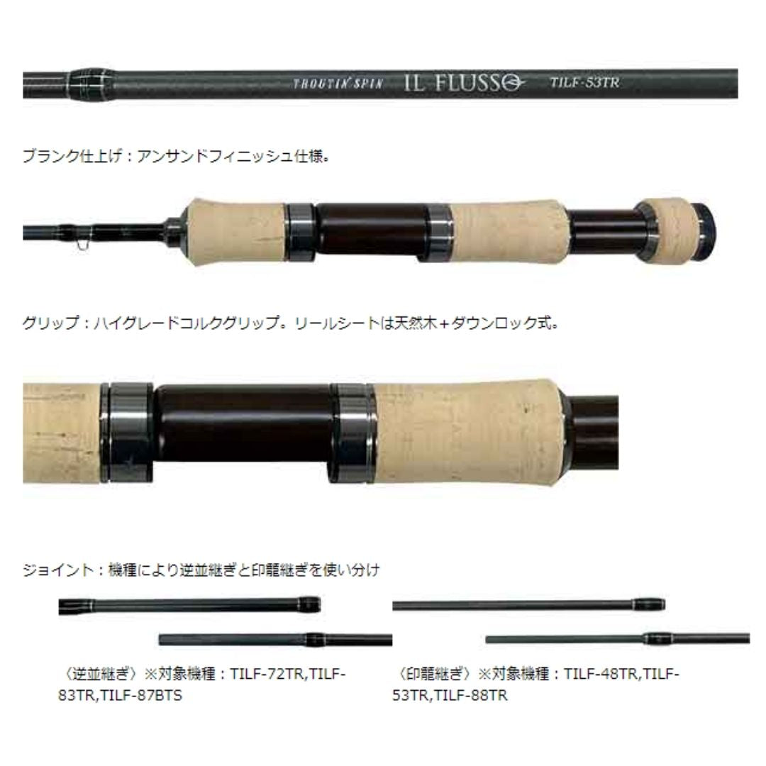 TILF-48TR | 4'8" | 76g | ~8g | ~6lb. | Light | Moderate Fast | 208mm | 75cm | 30tGraphite+Glass | 1.4mm |