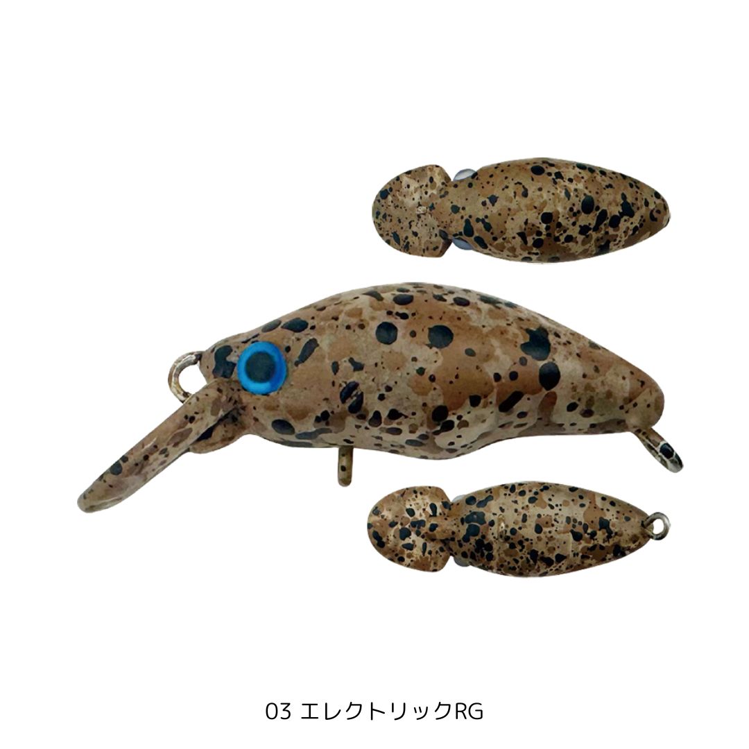 LENGTH:23mm WEIGHT:1.0g TYPE:ゆっくりと浮きやすい ※ルアーの塗装やライン、装着パーツにより浮き沈みに変化が生じます。 HOOK:オーナーばり カルティバ SBL-14♯9 RING:フロント:#1 リア:♯SPマイクロリングBK ♯00 ×1