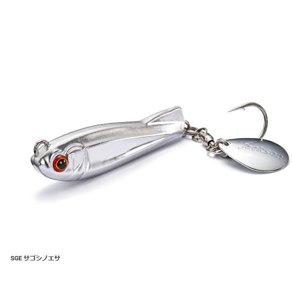 サゴシチューンのDNAを受け継いだ最終兵器 広範囲に点在したサゴシ・サワラを初めとした青物を狙うため、ガイド船アンリミテッドの池上日明が監修したブレードジグ「メタルエフェクトサゴシチューン」。アイの位置やウェイトバランスを調整し、フォール姿勢と高速リトリーブでの直進安定性能を向上。ルアー後部に採用されたフィンが姿勢の安定性をさらに高めます。青物は遊泳スピードが速く、ヒットした瞬間にフックへ掛かる重量が大きいため、トリプルフックよりも強度の強いシングルフックを採用。ナブラや跳ねがなく、どうしてもターゲットが浮かない日のシークレットルアーとしてお使いください。