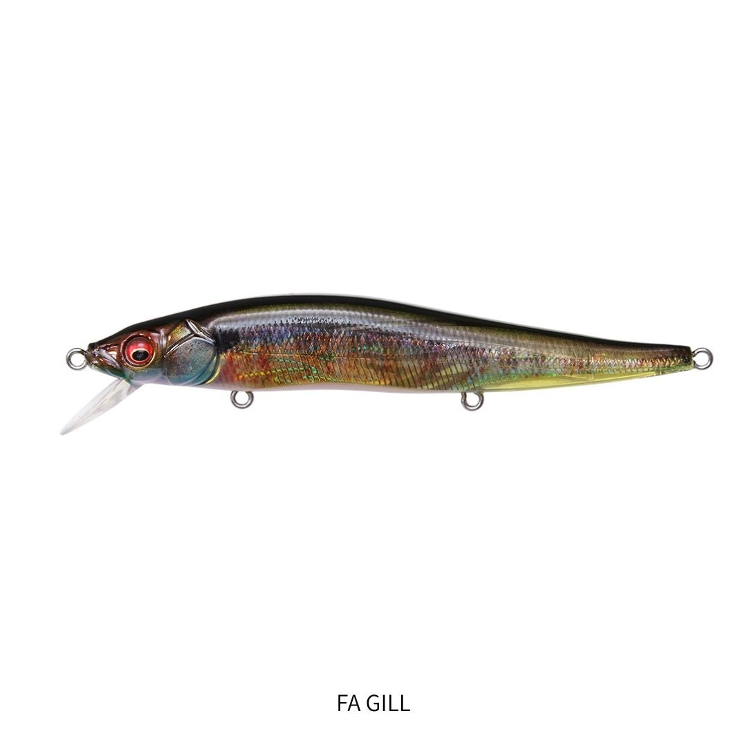 パワージャーキングによって、そのスレンダーかつ長身なボディが繰り出す、左右への驚異的な水中スライドアクションは、並みいる日本サイズのミノーを圧倒するストロングなパワーでモンスターを惹きつけ、スイッチを入れてしまいます。また、ストレートリトリーブにおいても、グリフォンのようにカヴァーに対して軽い身のこなしでかわしてしまう、ハイリフトセッティングは、スレンダーフォルムのシャローベイトとしても威力を発揮。日本仕様のモデルは、フロントとリアが、獲るためのアウトバーブアウトポイントのKATSUAGEフック。センターフックのみは、ラフアタックを掛ける事のみ追求したバーブレスのスレ針を採用。USA仕様は、すべてのフックにKATSUAGEフックを使用しています。
