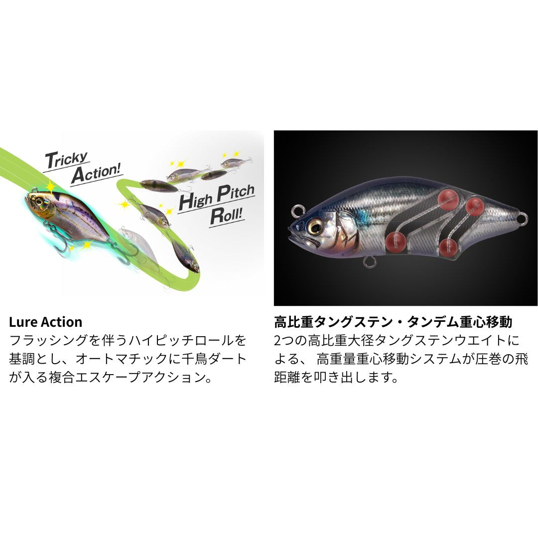 また、2つの超高比重大径タングステンバランサーによるタンデム重心移動システムは、メガバス空海ロッドなどベストタックルによるセッティングでは80mを超える圧巻の飛距離を叩き出します。