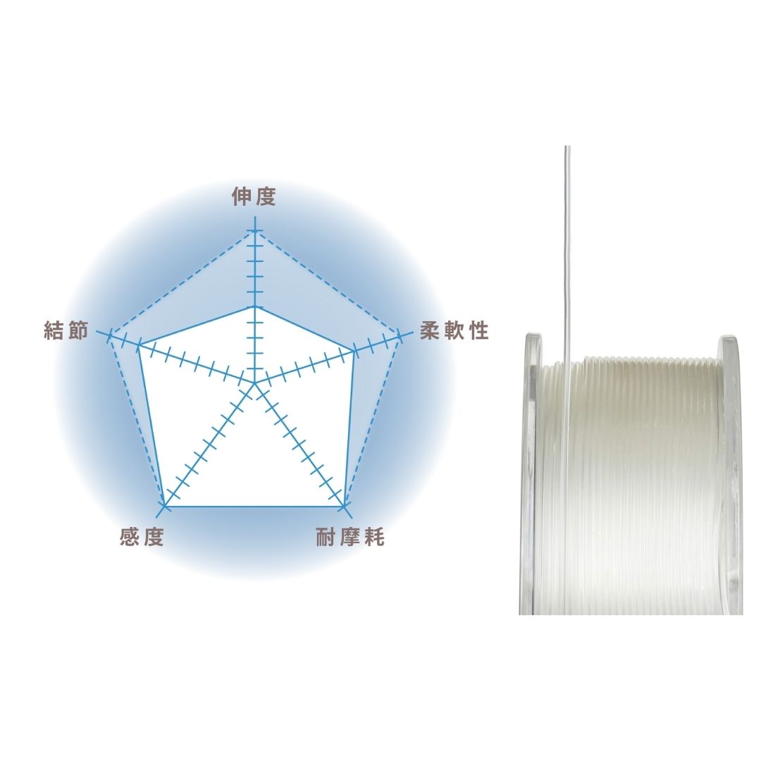 フロロの高感度・低伸度という特性により、ルアーの操作性が優れています。ノンストレスコーティングで魚の歯やヒレ、ストラクチャーとのコンタクトにもキズつきにくい、抜群の耐摩耗性を実現しました。