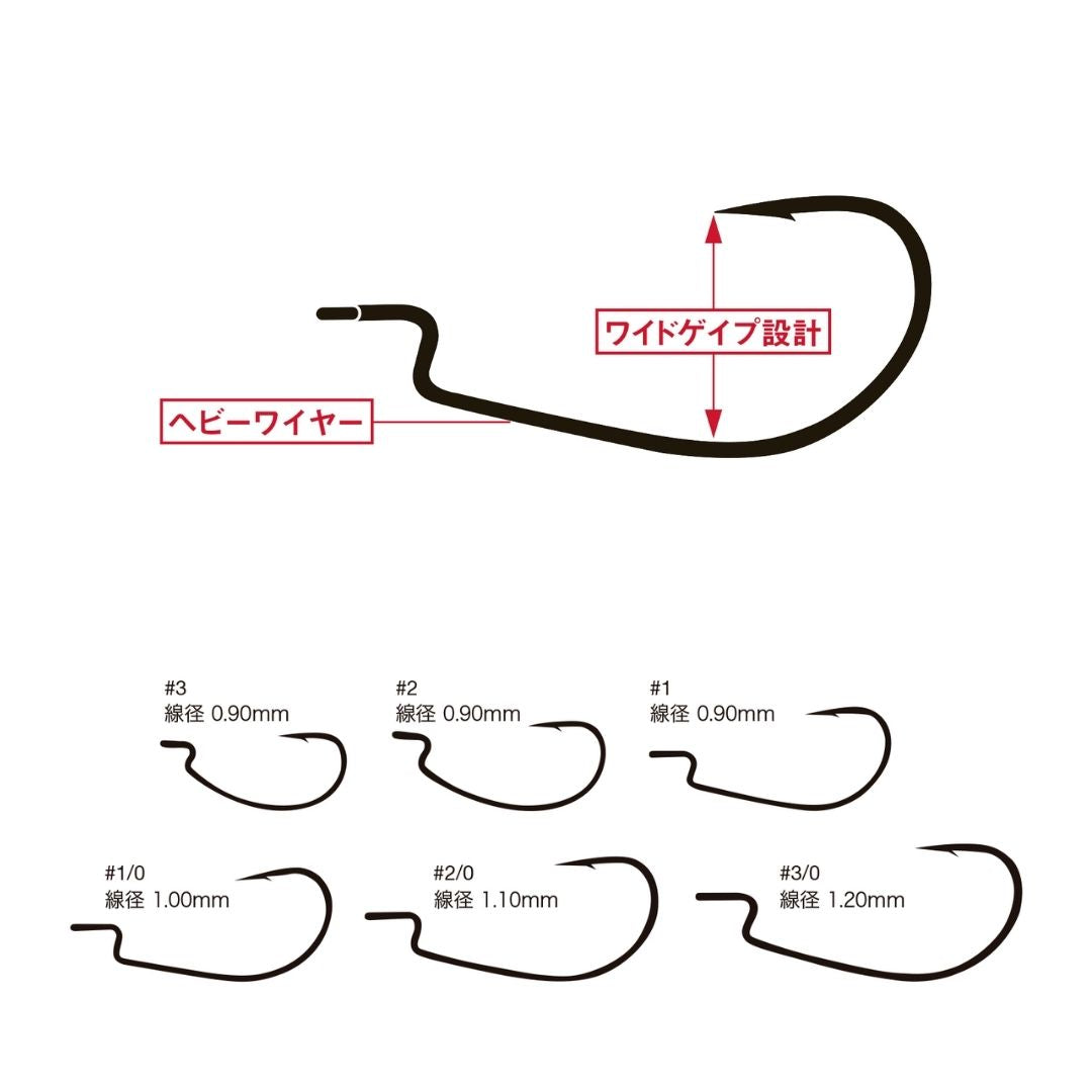 ●貫通力の高い細軸設定でありながら、ヘビーワイヤーを採用した強靭なフック。