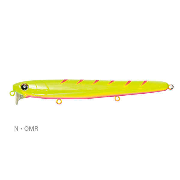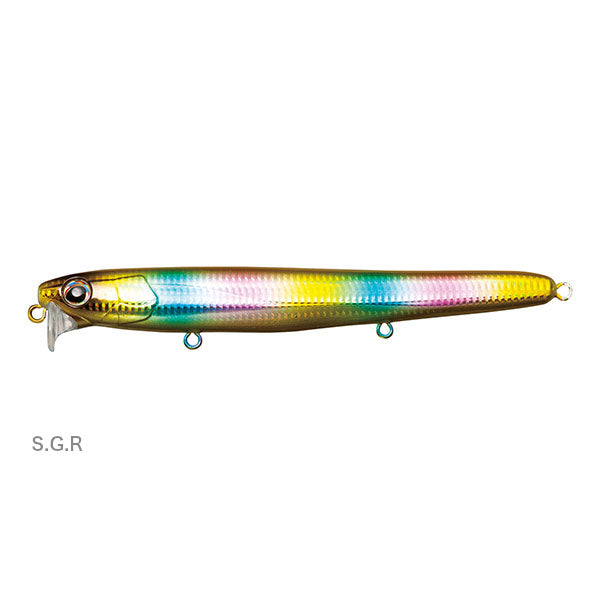 絶妙なボディーフォルムが幅広いベイトにマッチ! マッチボウ100Fを長くしただけではない。シーバスの本能を刺激し広大なエリアからでもシーバスから発見されやすいボリューム感。しかしながらToo muchにならない絶妙なボリューム感は小型ベイトからハイボリュームなベイトまで幅広くマッチする。 より広範囲で水面直下10㎝のレンジにマッチ! 「水面直下10㎝を征するオールシーズンシューター」というマッチボウ100Fからのコンセプトを継承。そして120Fはより広範囲を探れるよう移動重心ウエイトにはタングステン素材を使用。向かい風にも強く安定した飛距離をたたき出す。 「蠢く(うごめく)ように揺らぐ」そのアクションに思わずマッチ! スローリトリーブでは水面下0~5cmをストレートドリフトスイミング。巻きの速度や流速が上がるとそこにロールが入りはじめ、強い流れでは、ルアー後方が左右に揺れはじめるテールダンシングアクション。絶妙に変化するそのアクションに共通する「揺らぎ感」がマッチボウ120Fの釣果の核心。特にデッドスローでの「蠢くような揺らぎ」はテスト中、数々の難局を打破した最終奥義である。マッチボウ120Fの魅力、あなたにナイスマッチ。