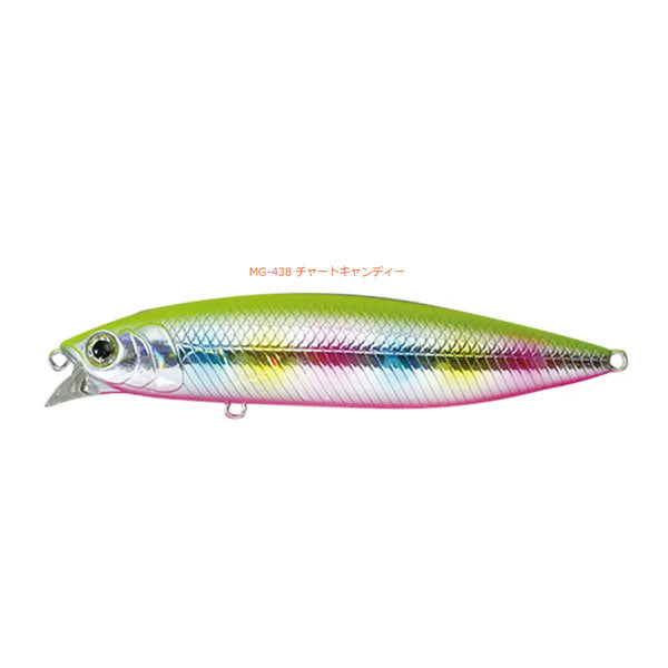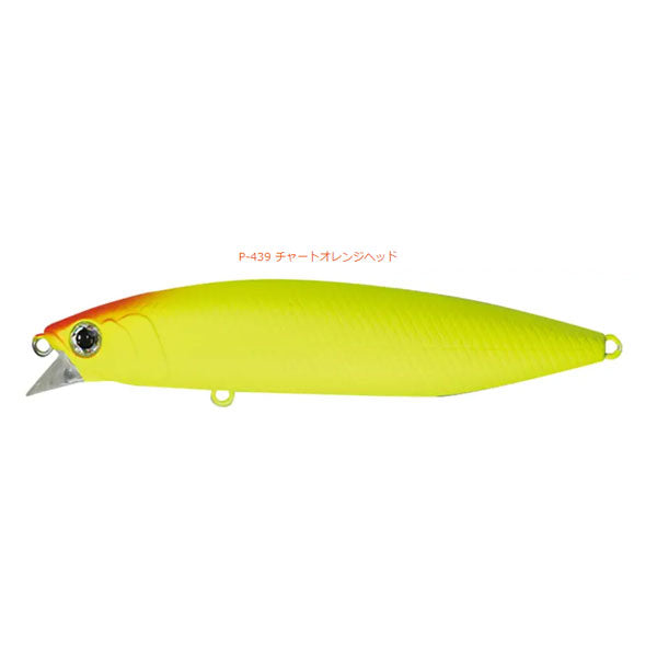 季節風をものともしない玉砕に新サイズ97Fが登場。全国どこでも使いやすいサイズ感。サーフはもちろんの事、リバー、河口、湾奥でも活躍。135F同様、圧倒的な飛距離は健在で97mmのボディに重量級のタングステン円柱ウェイトを搭載。TSLを搭載し重量級のウェイトもアクション時にはしっかり固定、固定重心のような泳ぎは健在です。手元に動きがしっかり伝わるアクションは135Fを踏襲しながらも、浮き姿勢は水平やや頭上がり気味に設定、極めてスローリトリーブも得意です。飛距離を武器に広範囲をカバー、潜行深度約80cmまでを得意とし、シャローで捕食する魚にアピールします。ややファットなボディは重量級ウェイトを搭載出来るのと同時に太軸#4フックを搭載し、青物や大物にも対応しています。