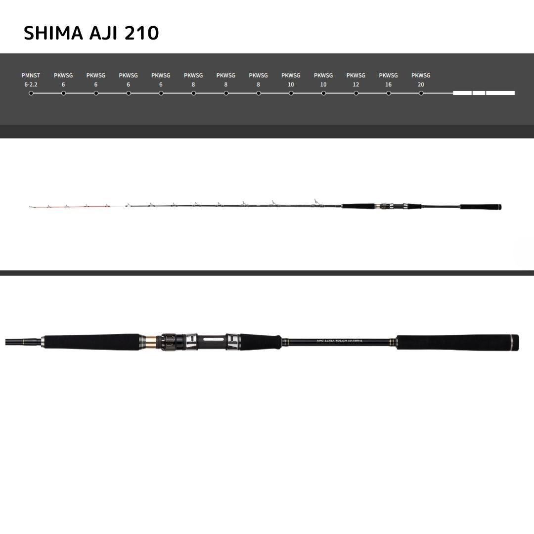 50~120号錘負荷対応と長尺により、近海から島廻り大型船による遠征五目までを広くカバーするシマアジスタンダードモデル。MPG素材特性から一般グラスでは表現の難しいアタリ感度とカーボンロッドでは再現される事のない、限界点までしなやか且つ粘り強く追従していく。TARGET:シマアジ・遠征五目