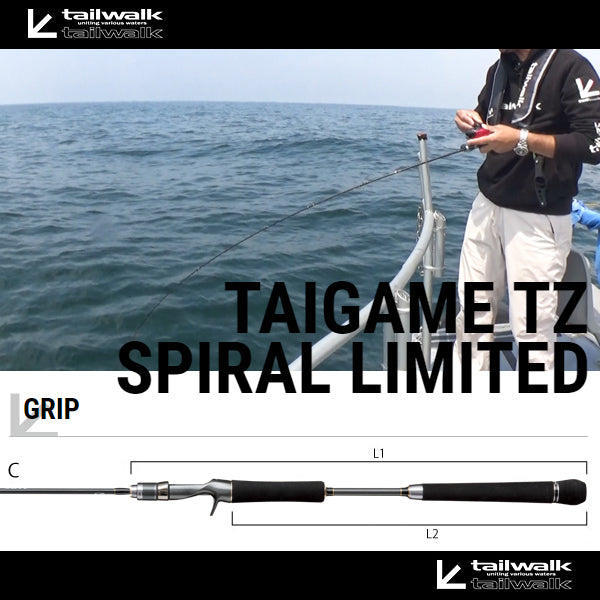 ブランク特性としては”しなやかさ”を狙ったスムーズアクション設計フルソリッドブランク。細身でライトフィーリング”さらなる表現力と感度の向上”を狙った。水温の低いシーズンやここ一発で集中力が必要な時、タイラバの水の掴みを感じ取るイメージで”暴れさせずしっとり巻く”ことが可能になる。TZの称号があらわす通り超軽量チタンフレームトルザイトリングガイド搭載。オリジナルモデルよりワンサイズダウンしたガイドをスパイラルセッティングしたことにより、ガイド数を減らし軽量化を狙いながらもブランクへの糸アタリは解消。軽さによるさらなる感度向上につながった。トップセクションのガイドから下にラインが引き込まれるため縦繊維フルソリッドブランクにつきものだったベンディングの際におこるブランク&ガイドのネジレも軽減。そのため従来のシリーズと同パワー表記でありながらより重めのタイラバの使用が可能になった。タイラバの使用範囲の広さはあらゆるフィールド・コンデションに対応できる幅の広さにも繋がった。抜群のホールド性能はそのままにタフタイムにおける集中力を向上させる握りやすさを追及した細身ECSリールシートを採用。コンパクトリールとの相性も抜群の軽量化を優先しつつ脇挟みに優れたセパレートグリップ。