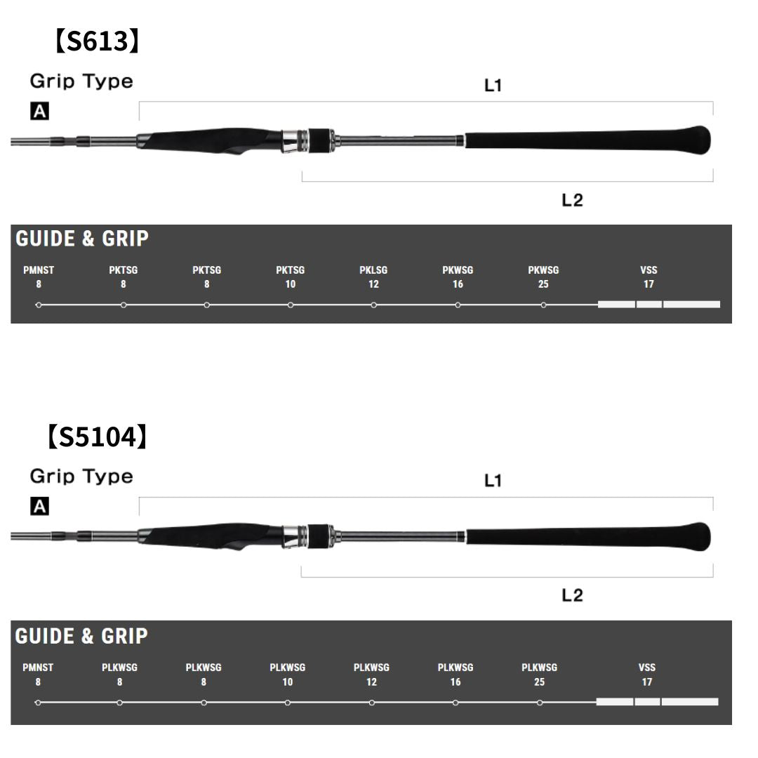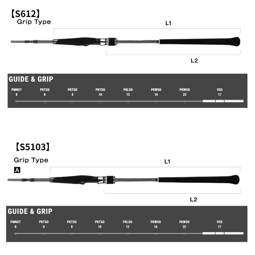 LENGTH(ft.in):6'1" PIECE:2(B) CLOSED LENGTH(cm):123 ROD WEIGHT(g):145 LURE WEIGHT(g):max 140 LINE WEIGHT(PE):max 2.5 Drag(kg):max 5 L1(mm):630 L2(mm):450 GRIP TYPE:A JAN CODE:4516508 16368 1