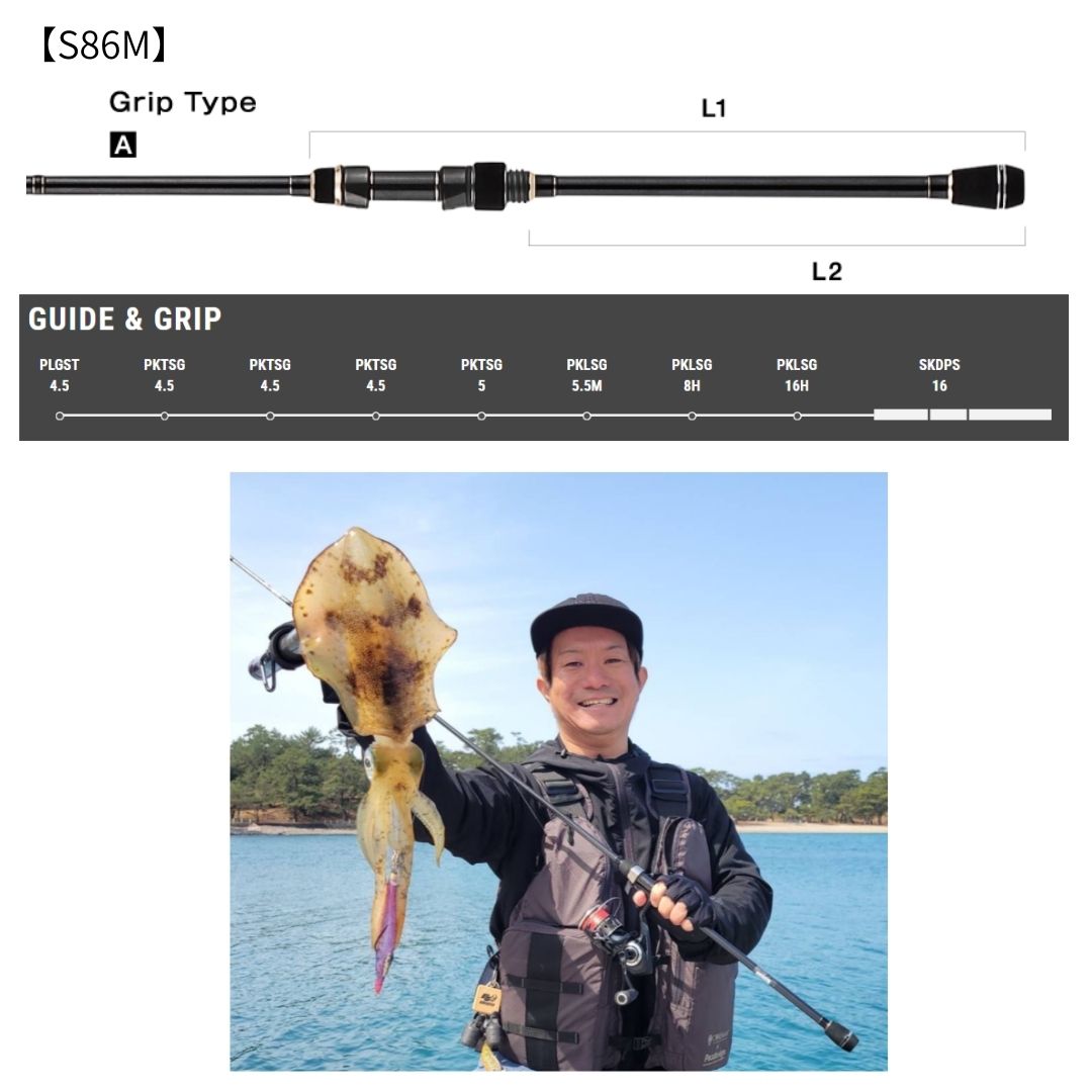LENGTH(ft.in):8'6" PIECE:2 CLOSEDLENGTH(cm):133 RODWEIGHT(g):86 EGI WEIGHT (号):1.5-3.5 LURE WEIGHT(g):max 20 LINE WEIGHT (PE):0.3-0.8 L1(mm):360 L2(mm):250 GRIPTYPE:A JAN CODE:4516508 16374 2