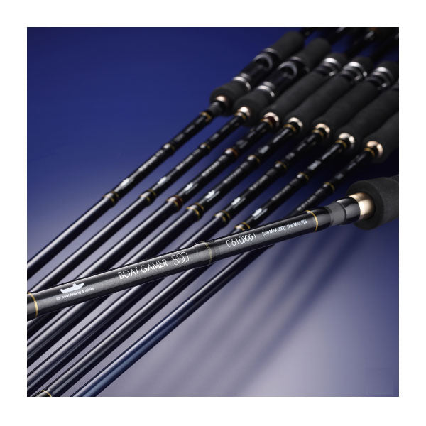 東京湾ボートシーバスガイド完全監修。ハイスタンダードボートゲームロッド 「毎日…海を見る。様々なゲストをエスコートする。」シーバスフィッシングガイドの意見をカタチにしたネオスタンダードボートシーバスロッド。幅広い使用用途に対応するベーシックモデルはもちろんのこと、ピンスポットの穴撃ち用モデル、広範囲をカバーする遠投用モデル、コノシロパターンのビックベイト用モデルなど、特殊なフィールドやシチュエーションにも対応するスペシャルモデルも用意。意図するスポットへルアーを確実に届けるキャスト性能・ルアーに命を吹き込むための操作性・ファイト時の追従性など、ボートシーバスに求められる基本的な性能を今一度見直しつつテストを重ね、完成にこぎ着けた。どのモデルも比較的クセのないベンディングカーブをみせ、1モデルで様々なルアーを幅広く使用できるのも魅力のひとつだ。ビギナーからエキスパートまで愛用できる、装い新たなボートシーバスロッドシリーズ。tailwalkが自信を持ってお送りする真の“スタンダード”を船上でぜひ体感してもらいたい。 ブレードジグやミノーを用いたサワラゲームにベストマッチする長尺モデル 近海のオフショアキャスティングゲーム全般に完全対応するマルチパーパスモデル。特にサワラゲームには最適なパワー感とレングスとなっている。その他、シーバス/青物全般/シイラ/フラットフィッシュなどにも対応。これ一本で幅広い魚種に対応する汎用性も併せ持つ。多種多様なルアーへ対応するため、敢えて極端なテーパーとせず、スムーズに曲がるレギュラーテーパーデザインを採用。MAX 60gまでのルアーであれば、ジャンルを問わず扱える懐の広さをもつ。また、ヘビーシンキングミノーやブレードジグの速巻き時に脇挟みがし易いよう、リアグリップは敢えて長めに設計。疲労の低減と安定したリーリングが可能となる。