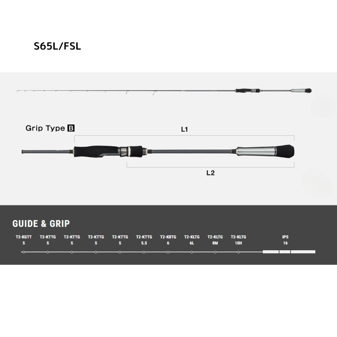 【S65L/FSL】LENGTH(ft.in):6'5" PIECE:1&Half CLOSEDLENGTH(cm):120 RODWEIGHT(g):115 LUREWEIGHT(g):max 180 LINE WEIGHT(PE):max 1.0 DRAG (kg):max 1.5 L1(mm):490 L2(mm):370 GRIPTYPE:B JAN CODE:4516508 17139 6