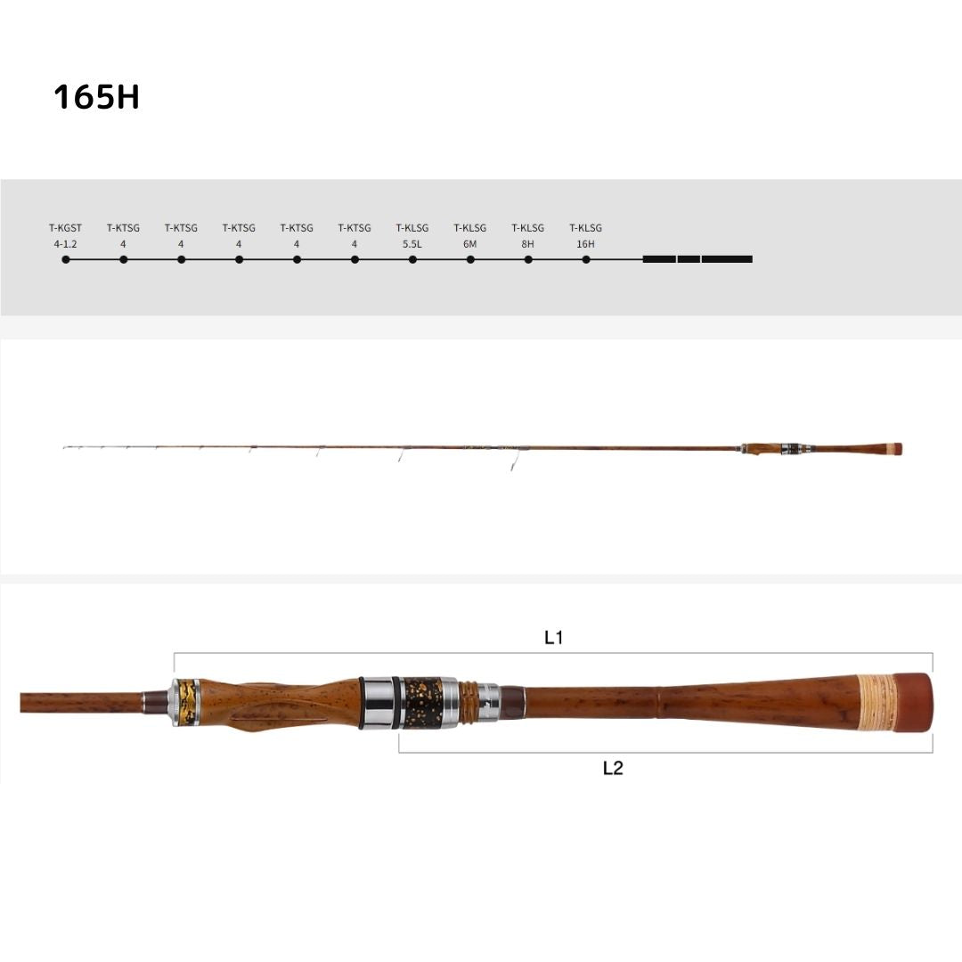 全体的にハリがあるロッドアクション、取り回しの良い165レングス、高感度CTSチタントップ。これらのファクターが指し示すものは「攻め」の キス釣り。繊細に、しかし精度が高い誘いを行い、わずかな地形変化と微かな魚信も捉え、喰わせるのではなく「掛ける」。軽く握りやすい TVSリールシートはペンシル持ちにも対応する。そんな最先端のキス竿に、江戸和竿を彷彿とさせる天然竹調デザインを纏わせ、まさに 温故知新のキス竿が誕生。東京湾から関西の深場までカバーする。