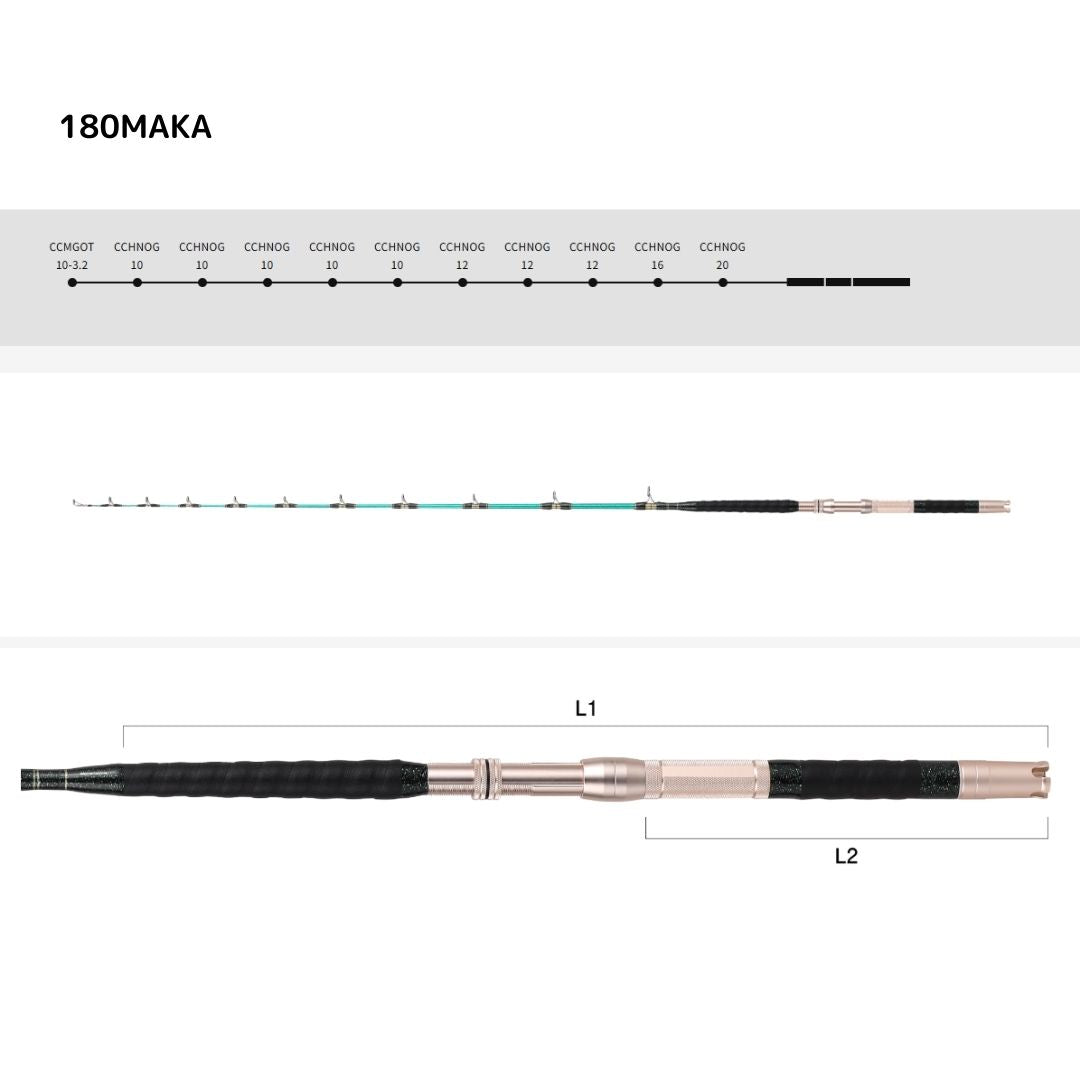 全長(m):2.05 継数(本):1+B 仕舞(cm):161 標準自重(g):437 先径(mm):2.3 元径(mm):8.5 錘負荷(号):30-100 L1(mm):510 L2(mm):370 JANコード:4516508517736